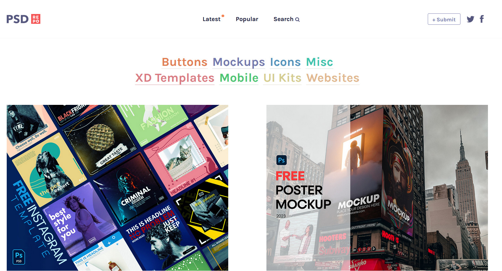 PSD Repo是一个提供免费PSD素材模板的下载站,素材的种类和数量都非常丰富,质量也比较高。PSD Repo提供的素材模板包括包括按钮图标、样机素材、图标素材、 XD素材、模板素材、 移动端素材、 用户界面套件素材、 网站设计相关素材等。