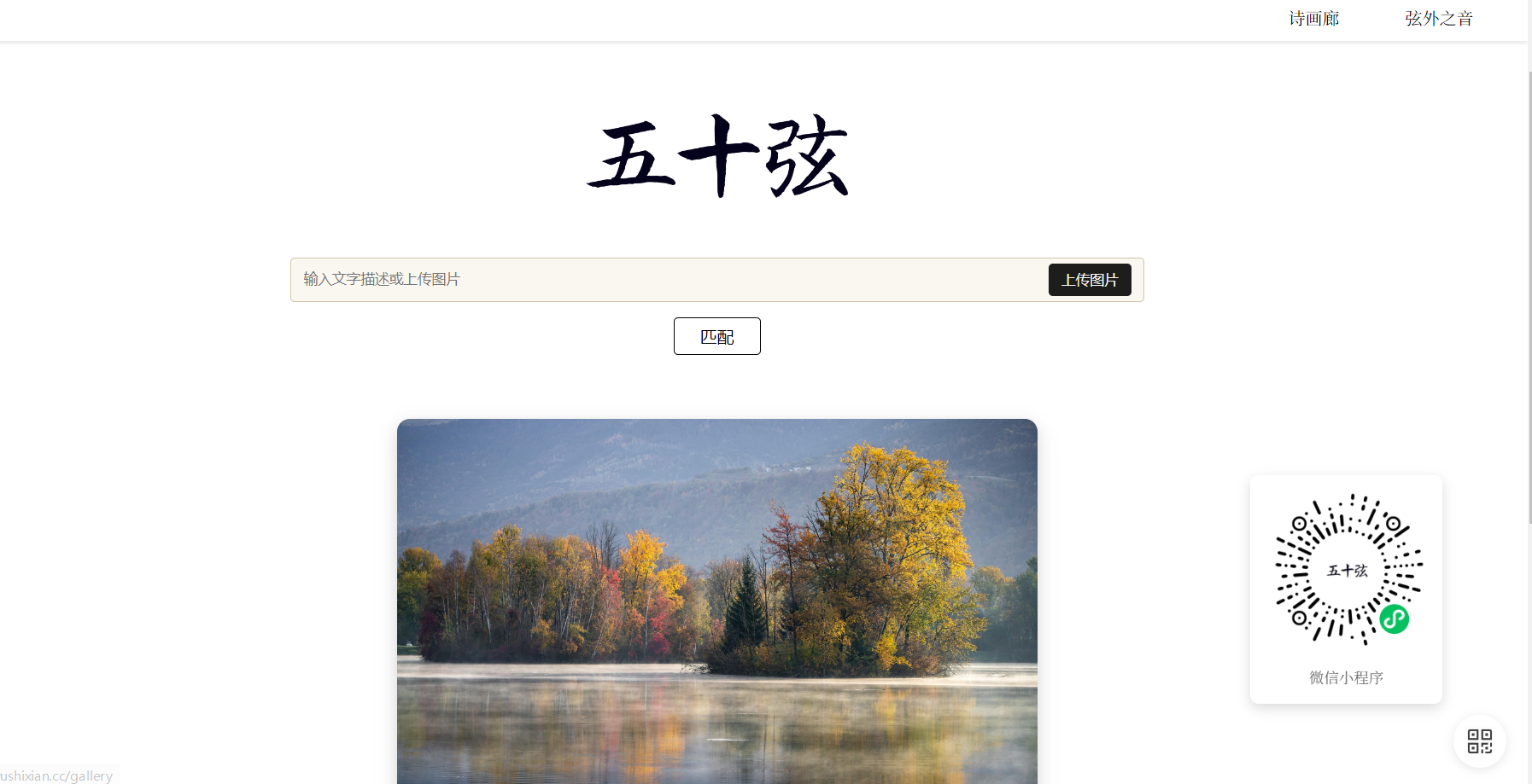 五十弦是一个AI加持的的古诗词搜索引擎。它能够分析图片或文字,以向量搜索的方式从浩瀚的古诗词中找到最贴切的诗句。