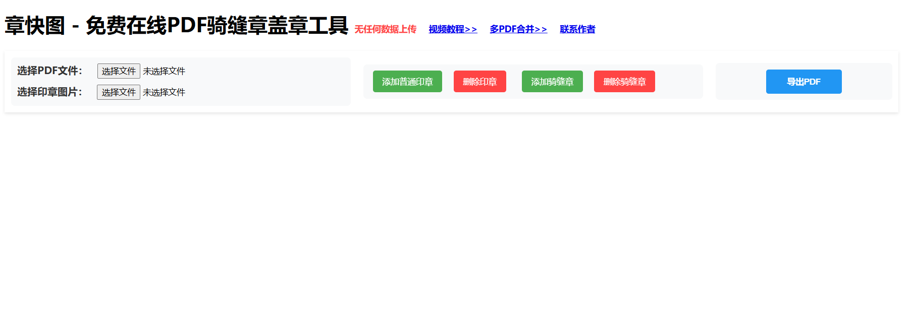章快图是一款便捷的免费在线工具,专为PDF文档的电子盖章需求设计,支持普通印章和骑缝章的快速添加。用户无需下载任何软件,即可通过网页直接上传PDF文件并完成盖章操作,满足各类文档处理需求。无论是普通印章还是复杂的骑缝章,章快图都能高效处理,帮助用户轻松实现PDF文档的电子化盖章,适用于合同、协议等文件的快速处理场景。