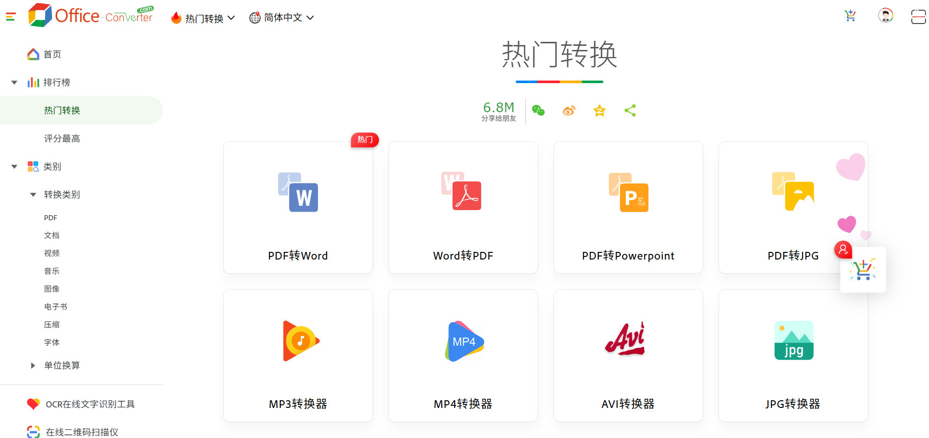 - 网站首页突出了“热门转换”板块,展示了用户最常使用的转换功能,方便用户快速访问。