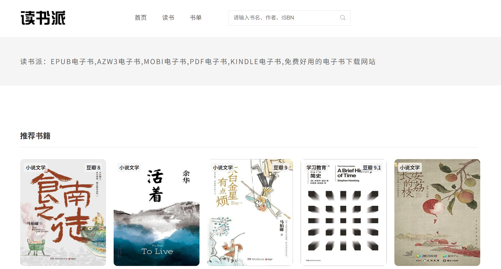 读书派是一个提供多格式电子书下载的网站,支持EPUB、AZW3、MOBI和PDF格式,满足不同阅读设备的需求。平台收录的书籍覆盖小说文学、历史传记、教育学习、经济管理等多类题材,适合不同读者群体使用。