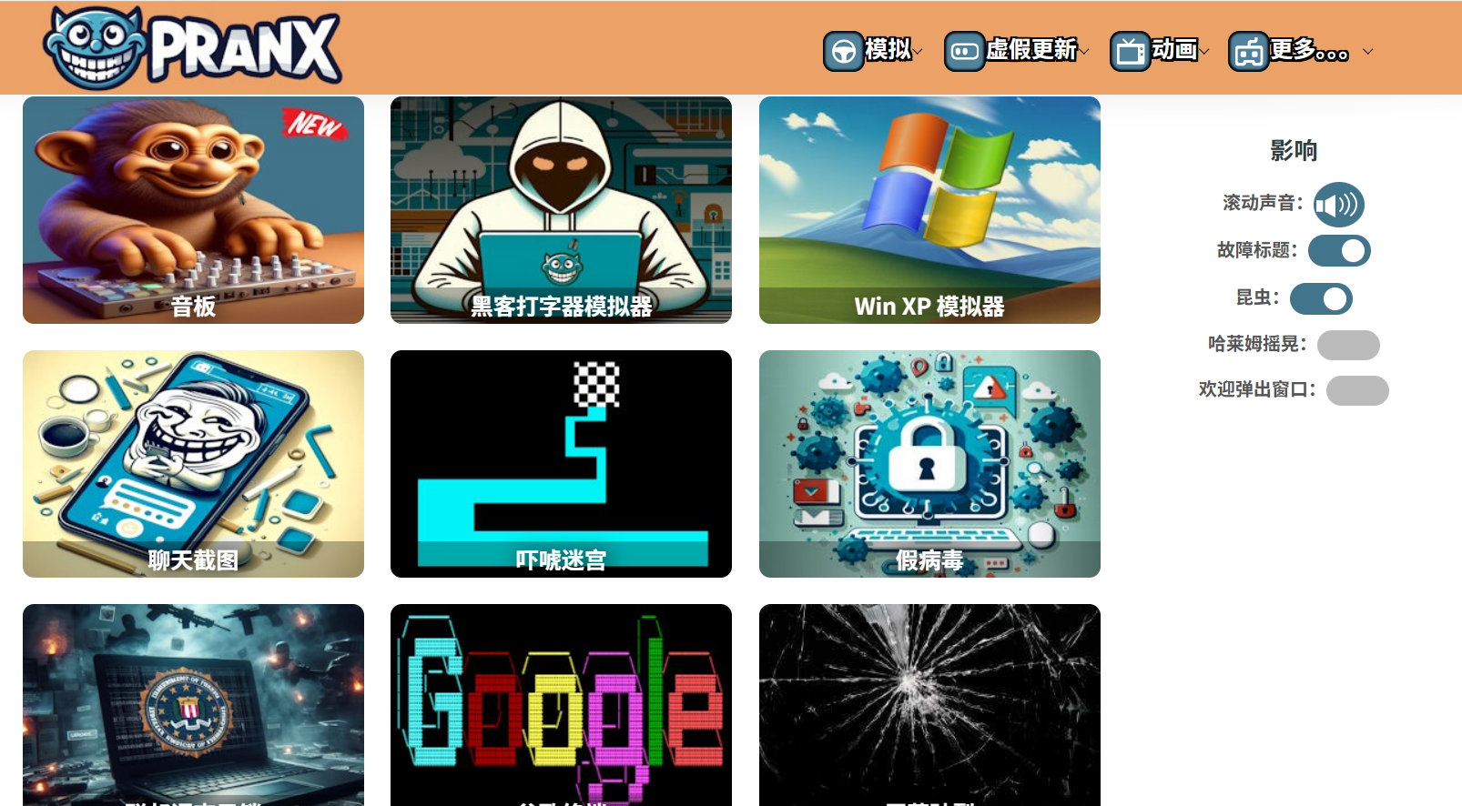 Pranx网站就是你的最佳选择!这里有各种恶搞模拟器和幽默工具,保你笑到停不下来,快来一起玩吧!