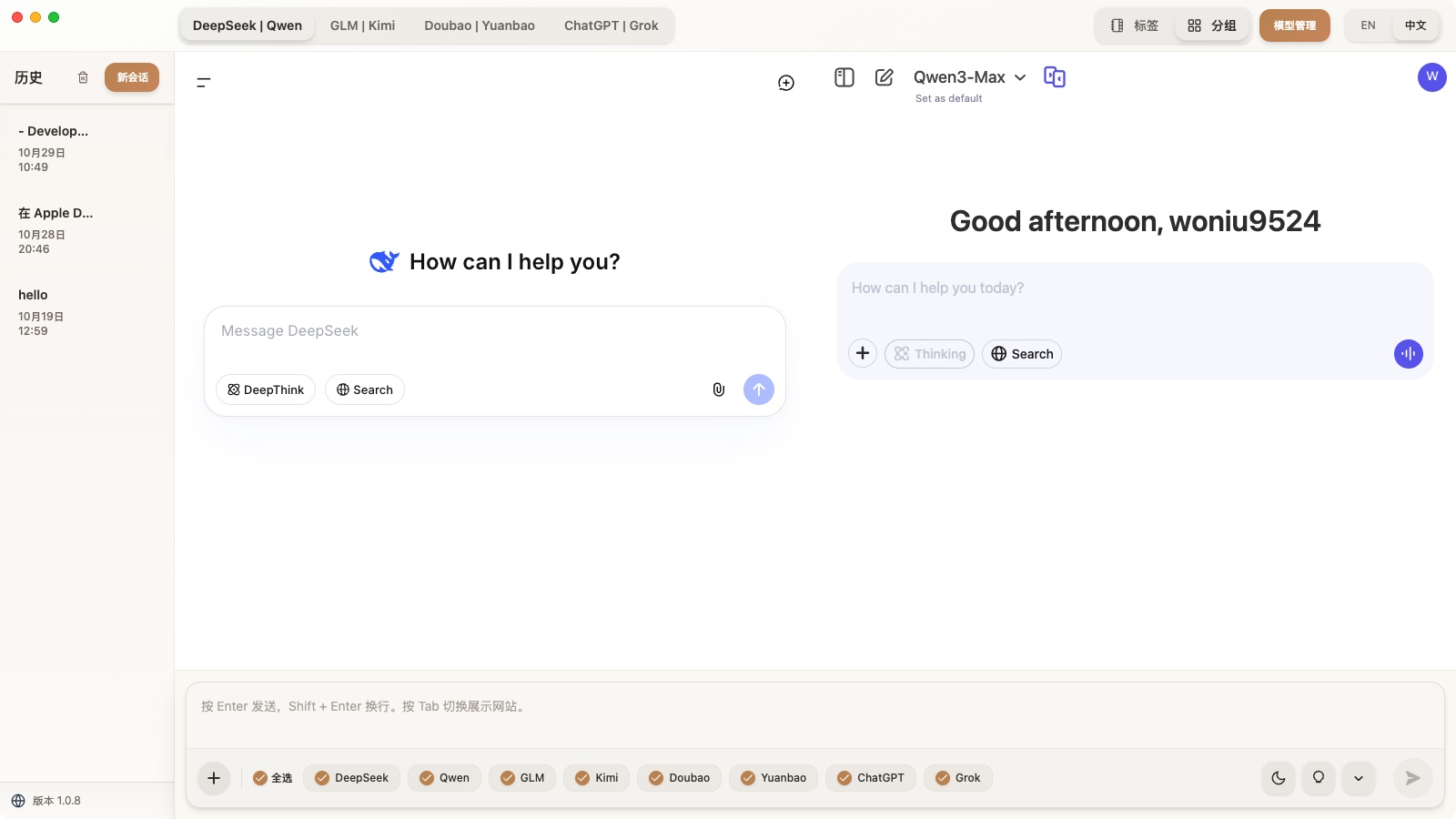 - 主流模型齐全:覆盖ChatGPT、DeepSeek、Qwen、GLM、Kimi、Doubao、Yuanbao、Grok等