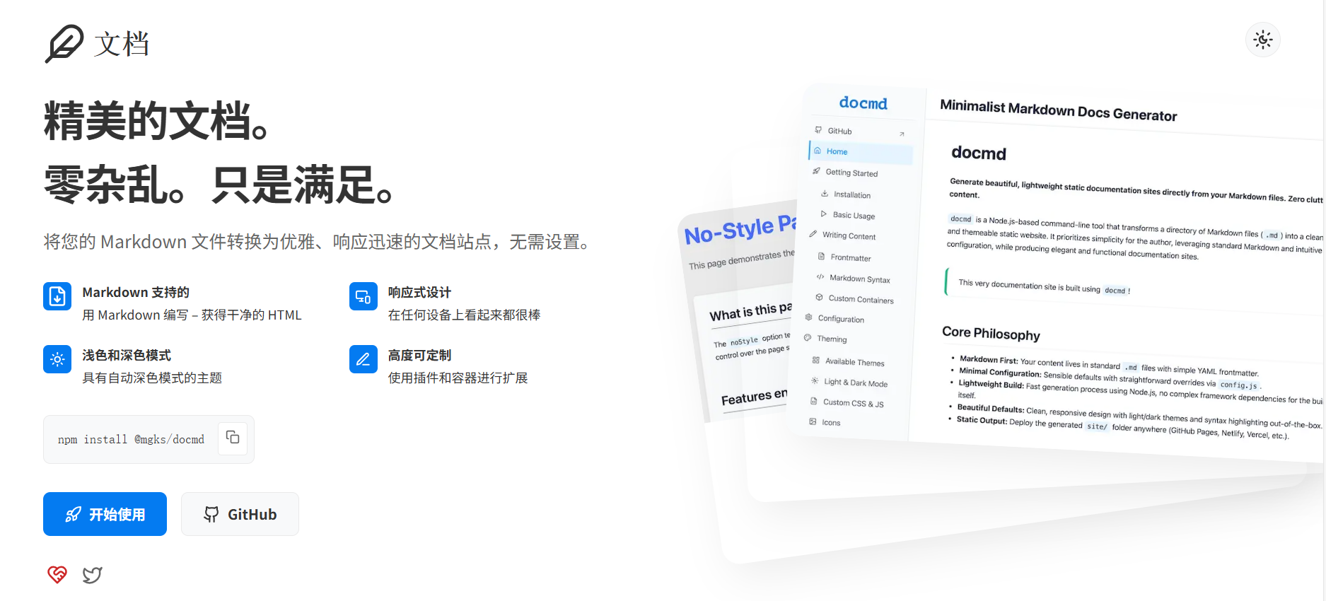 无论你是开发者、开源维护者,还是喜欢用 Markdown 记录的创作者,Docmd 都能让你的文字以最美的方式呈现。