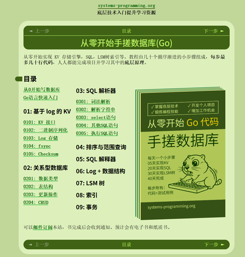 - 访问网站: 打开 "从零开始手搓数据库(Go)" 页面 https://systems-programming.org/database_zh/