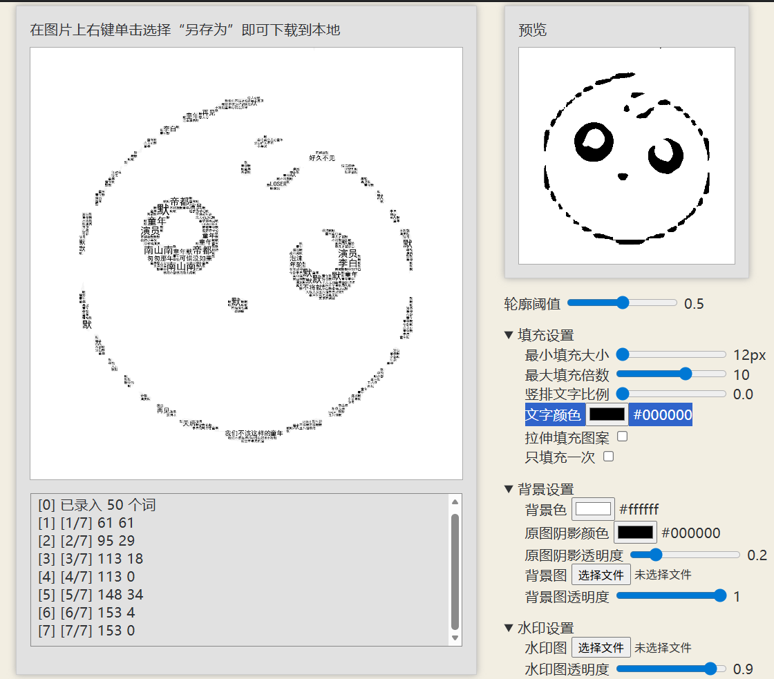 - 文字选择: 选择的文字会影响字符画的整体风格,可以根据图片内容选择合适的文字。